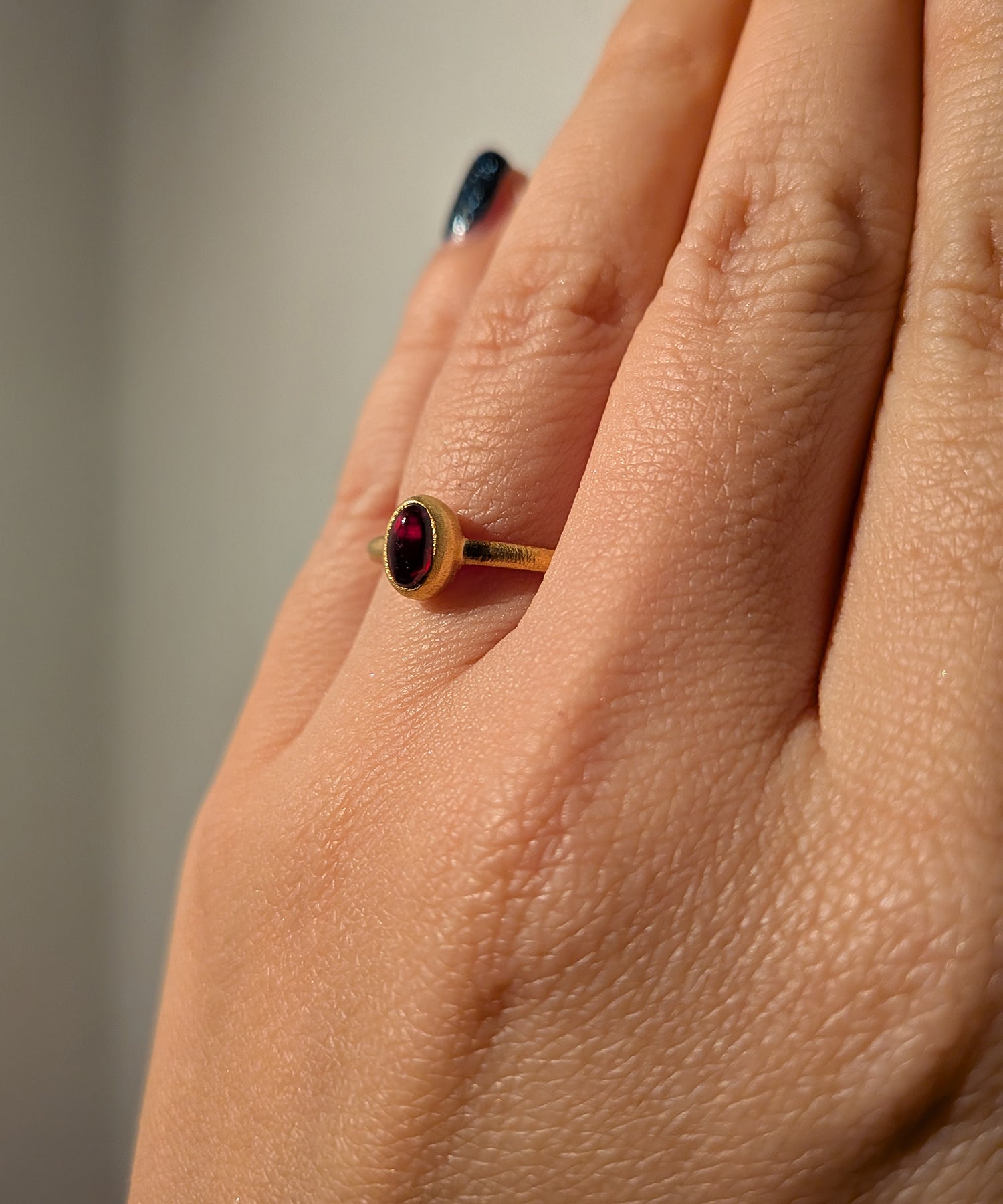 深みのあるワインレッドカラーがクールな印象を与える「ガーネット」。大人の女性の魅力を引き立たせて、コーディネートをワンランクアップしてくれます。