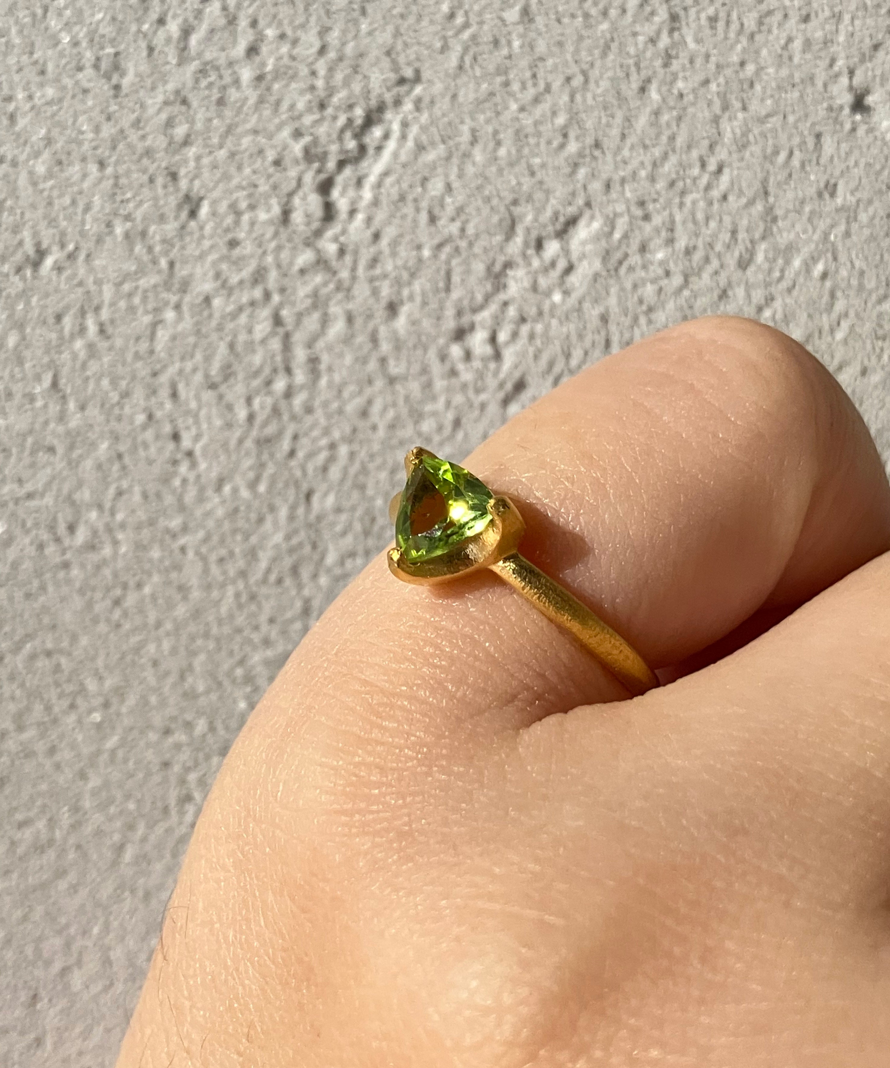 やわらかなイエローグリーンが明るく爽やかに煌めく「ペリドット」。肌色を選ばずにどんな方にも自然と馴染み、コーディネートの幅を広げてくれます。