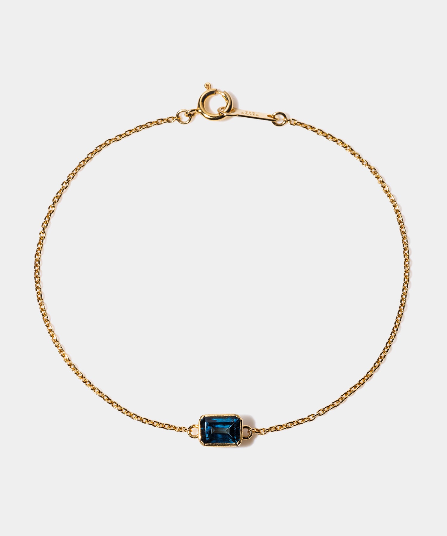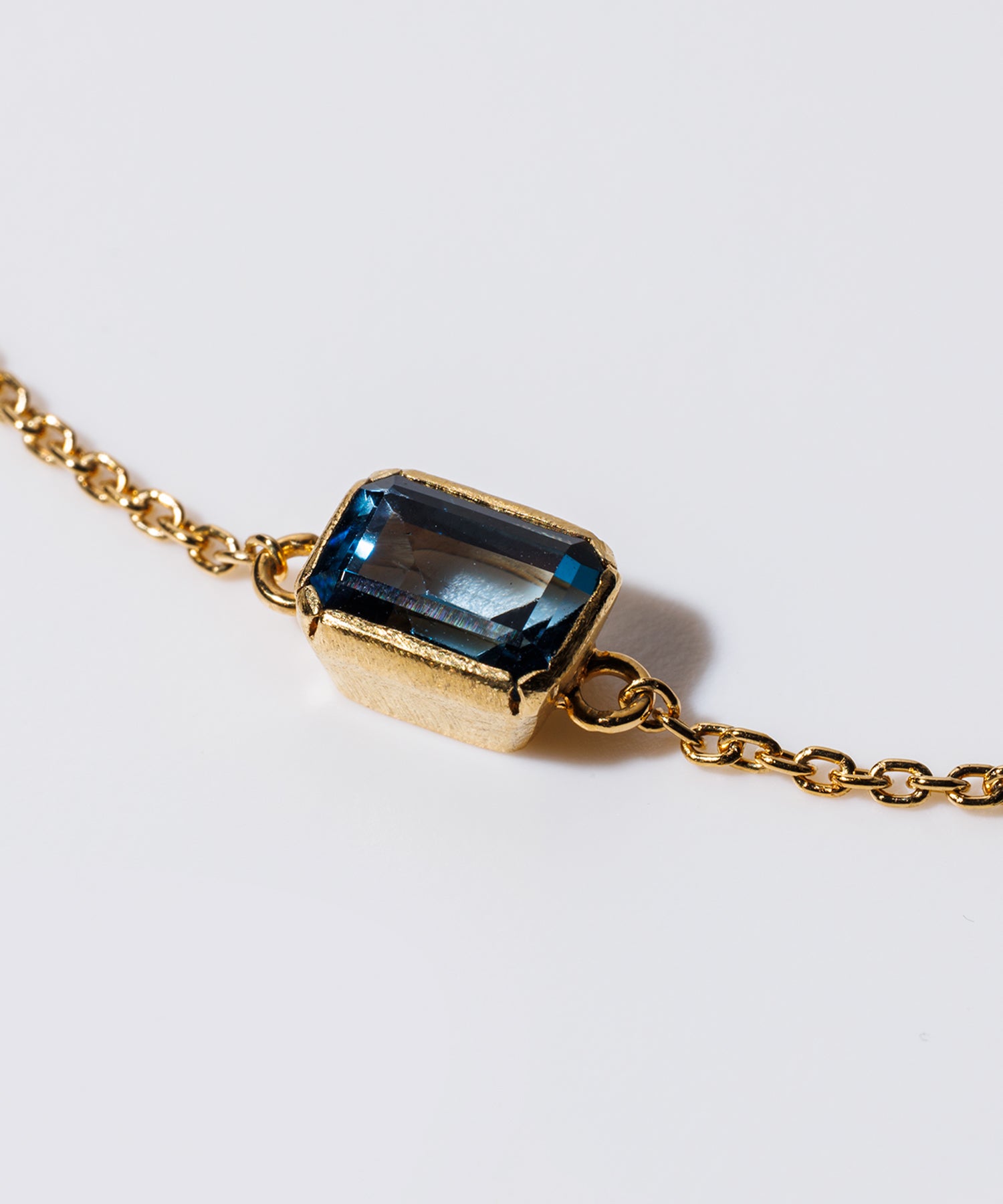 覗き込むとロンドンの空模様を連想させる、深く吸い込まれそうな濃紺が魅力的な「ロンドンブルートパーズ」。カジュアルな天然石ジュエリーではなく、シックな装いにもマッチします。