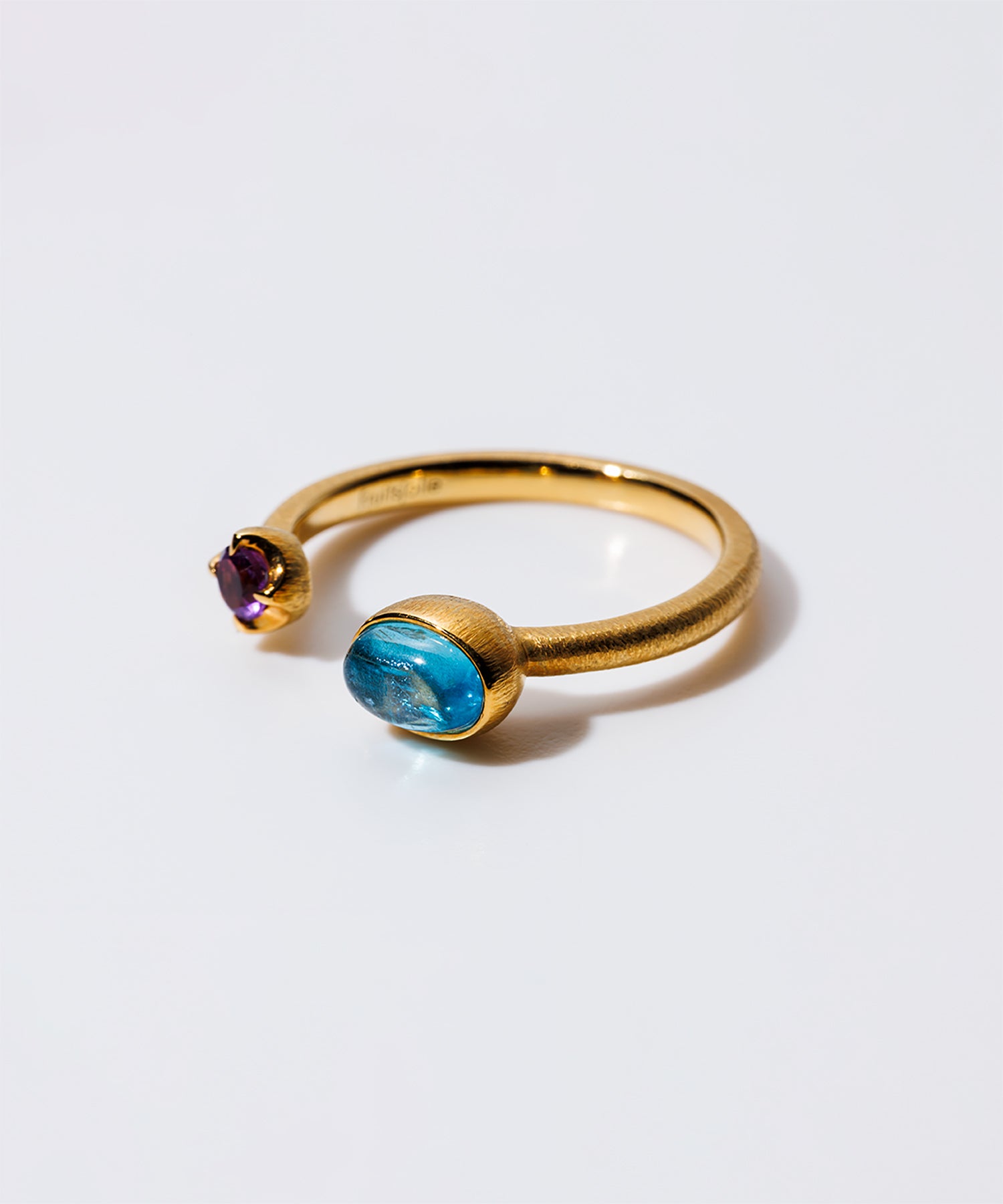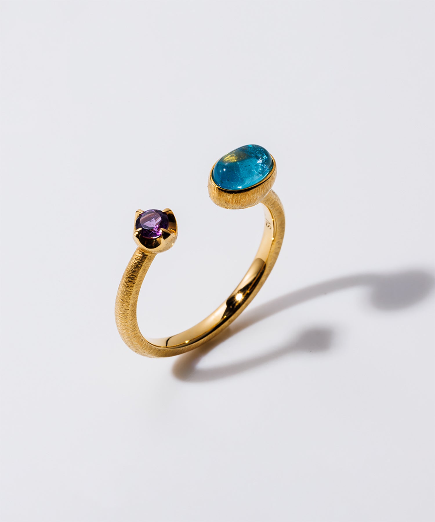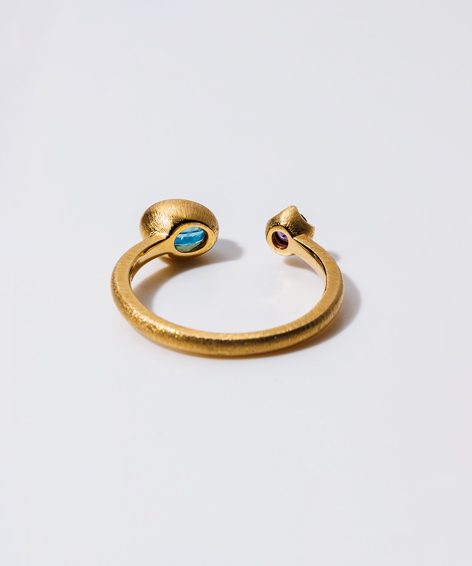 ラテン語の“双子”を語源として名付けられた「Gimmel(ギメル)」シリーズ。Fruitsjolie のギメルは様々な型をご用意しており、お好きなルースを2つ選んでオーダーしていただけます。ルースの配色や形など組み合わせ次第で与える表情も様々で、あなたの個性が溢れます。また、輪っかの一部が切れてアルファベットの“C”のような形になっているため、着け心地が良く、特徴的なフォルムはコーディネートの幅を広げてくれます。