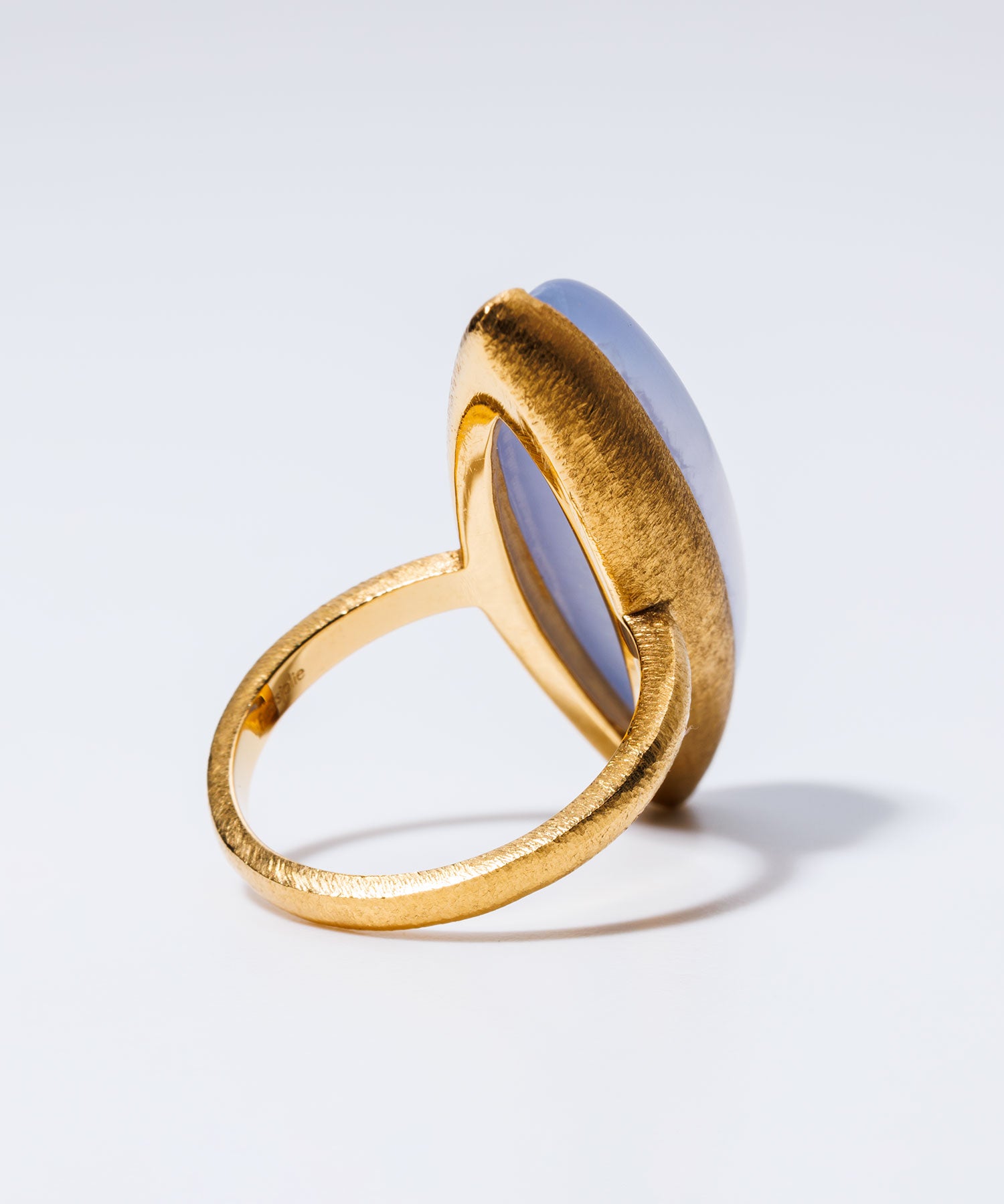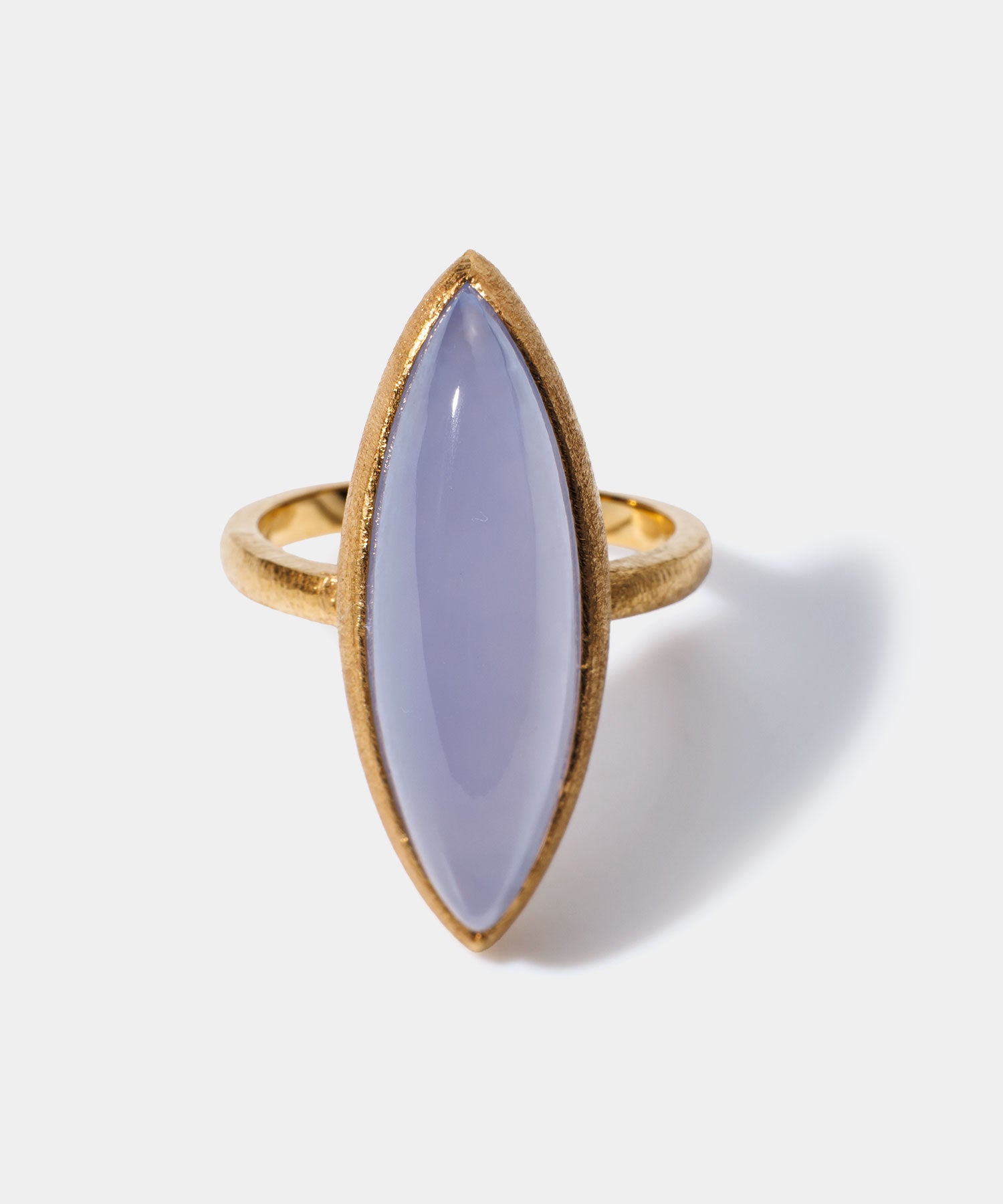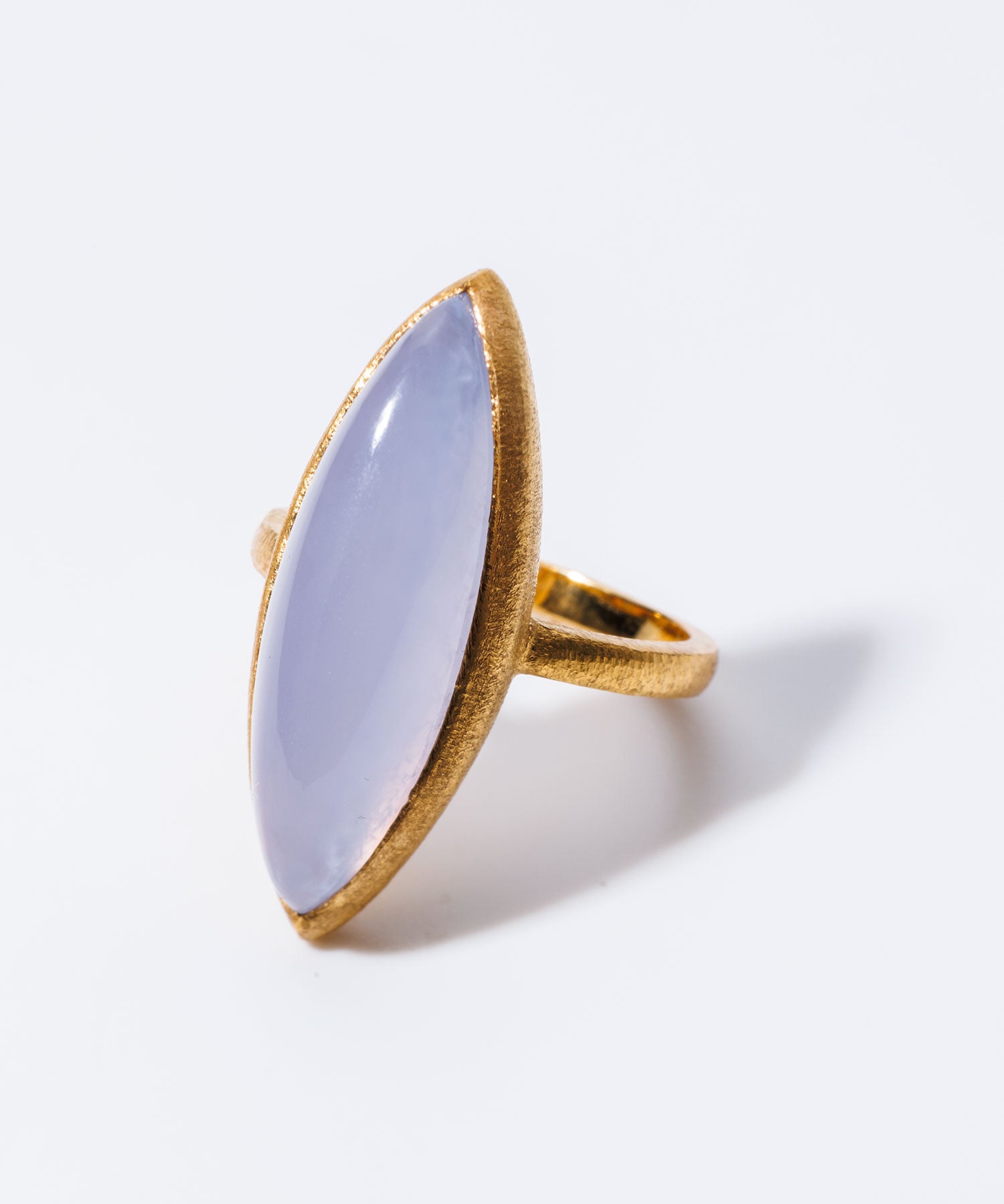 少し青味がかったやわらかな透け感が特徴的な「ブルーカルセドニー」。どのコーディネートにも自然と調和してくれる優れもので、最初に取り入れていただきたいアイテムのひとつ。