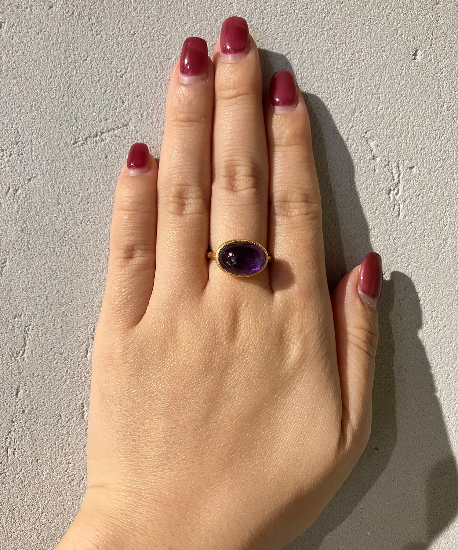 気品のある色艶が魅力的な「アメジスト」。濃淡は石によって様々で、女性の肌を一番きれいに見せると云われています。