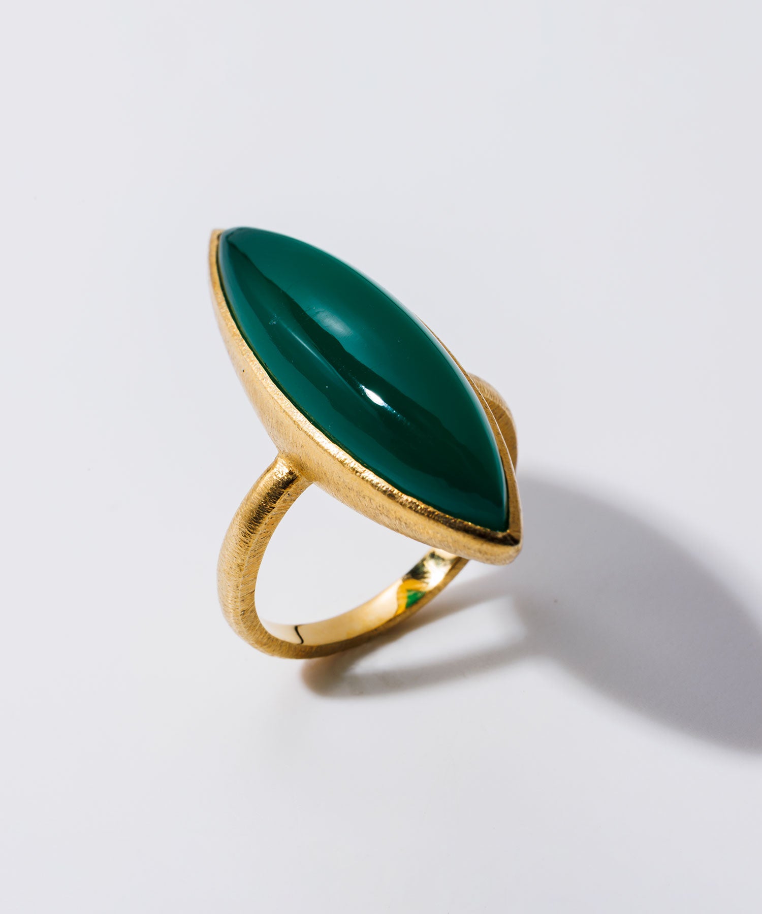 鮮やかながらもシックさを併せ持つ「グリーンオニキス」。肌に映えるエメラルドグリーンがシンプルな装いにアクセントを与えてくれます。
