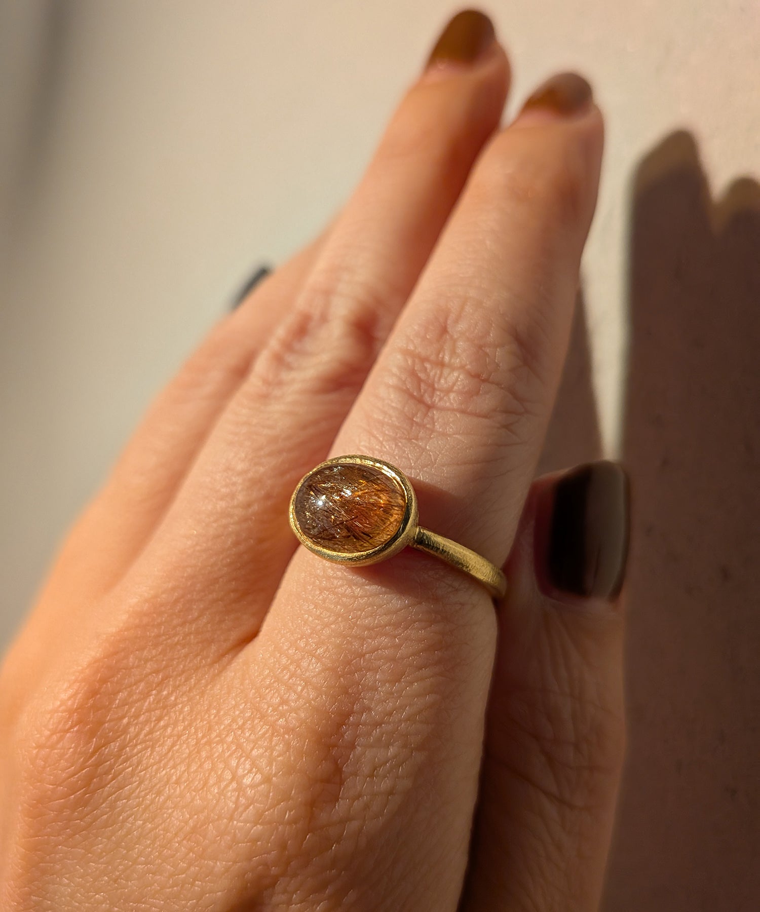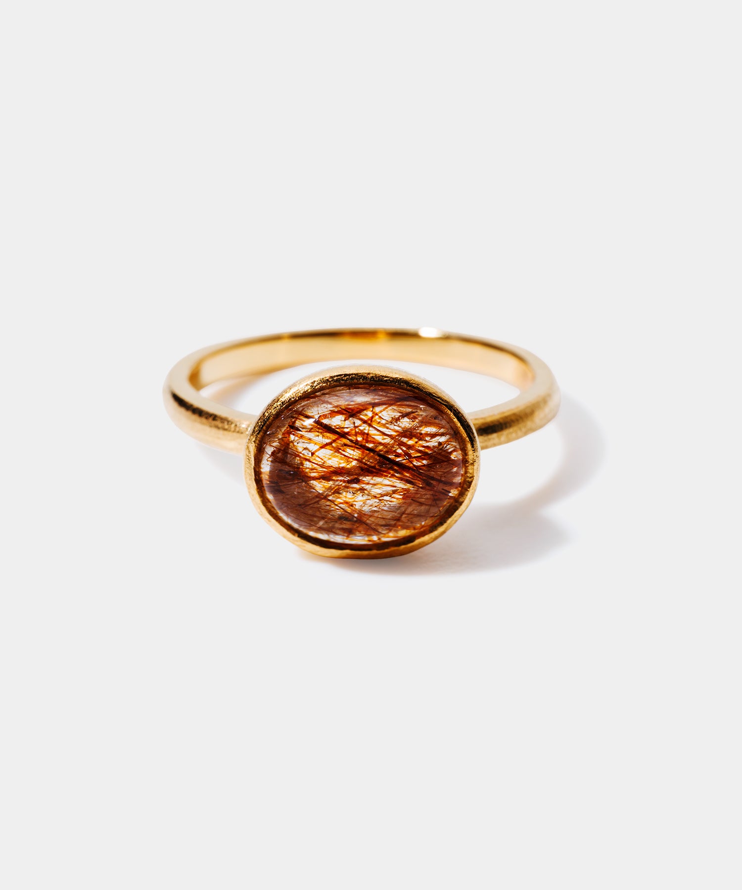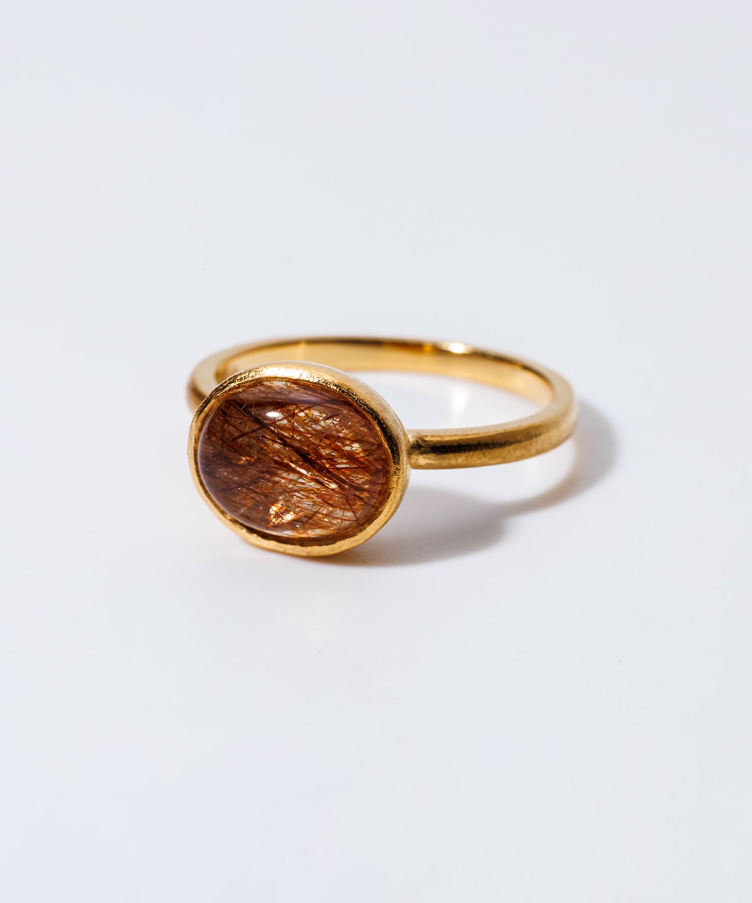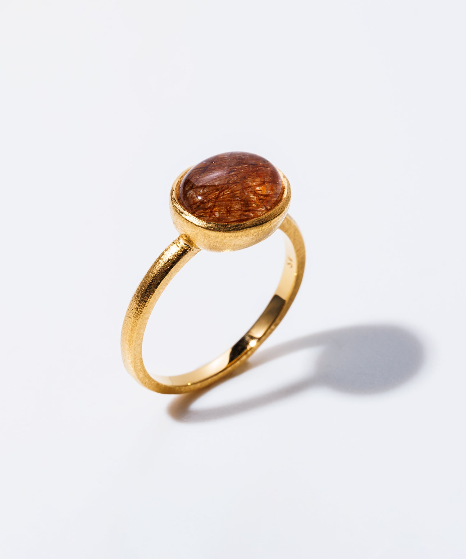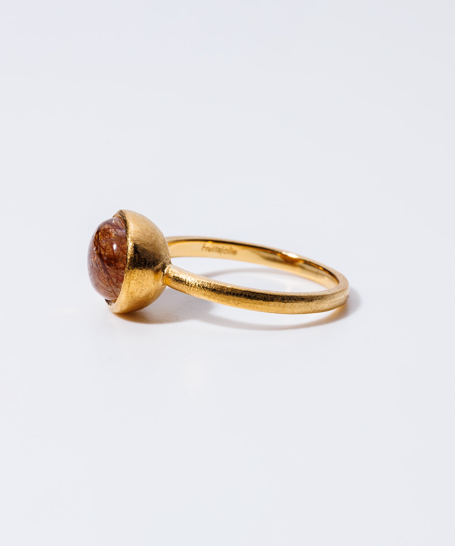 クォーツの中にブラウンの針が入り、とても個体差の多い「ブラウンルチルクォーツ」。一つとして同じものはないインクルージョンの入り方は自然が作った芸術品そのもの。金運や仕事運、勝負運などをあげてくれると云われており、色石とのレイヤードもオススメ。