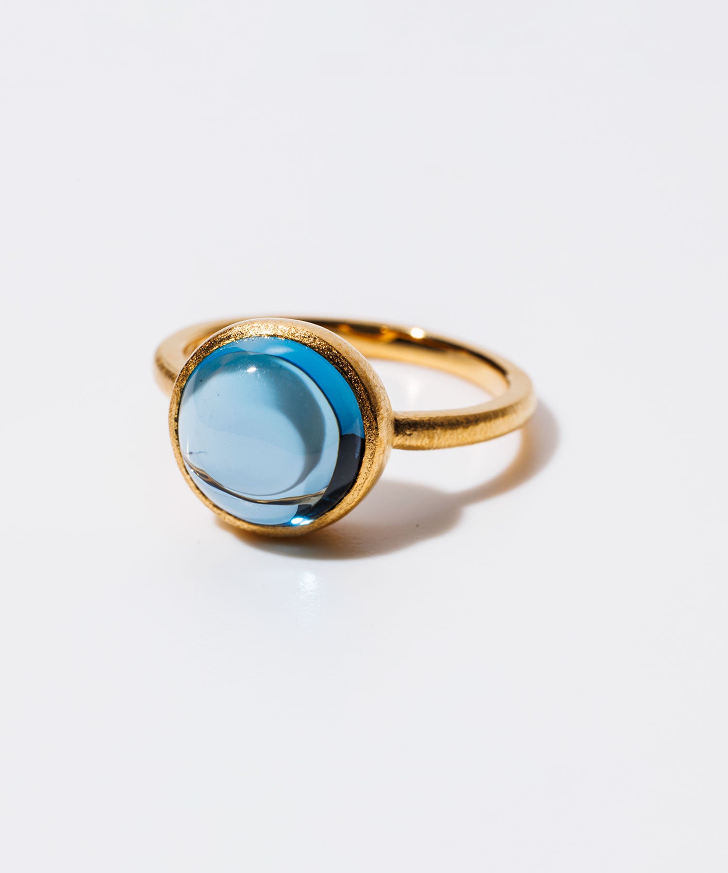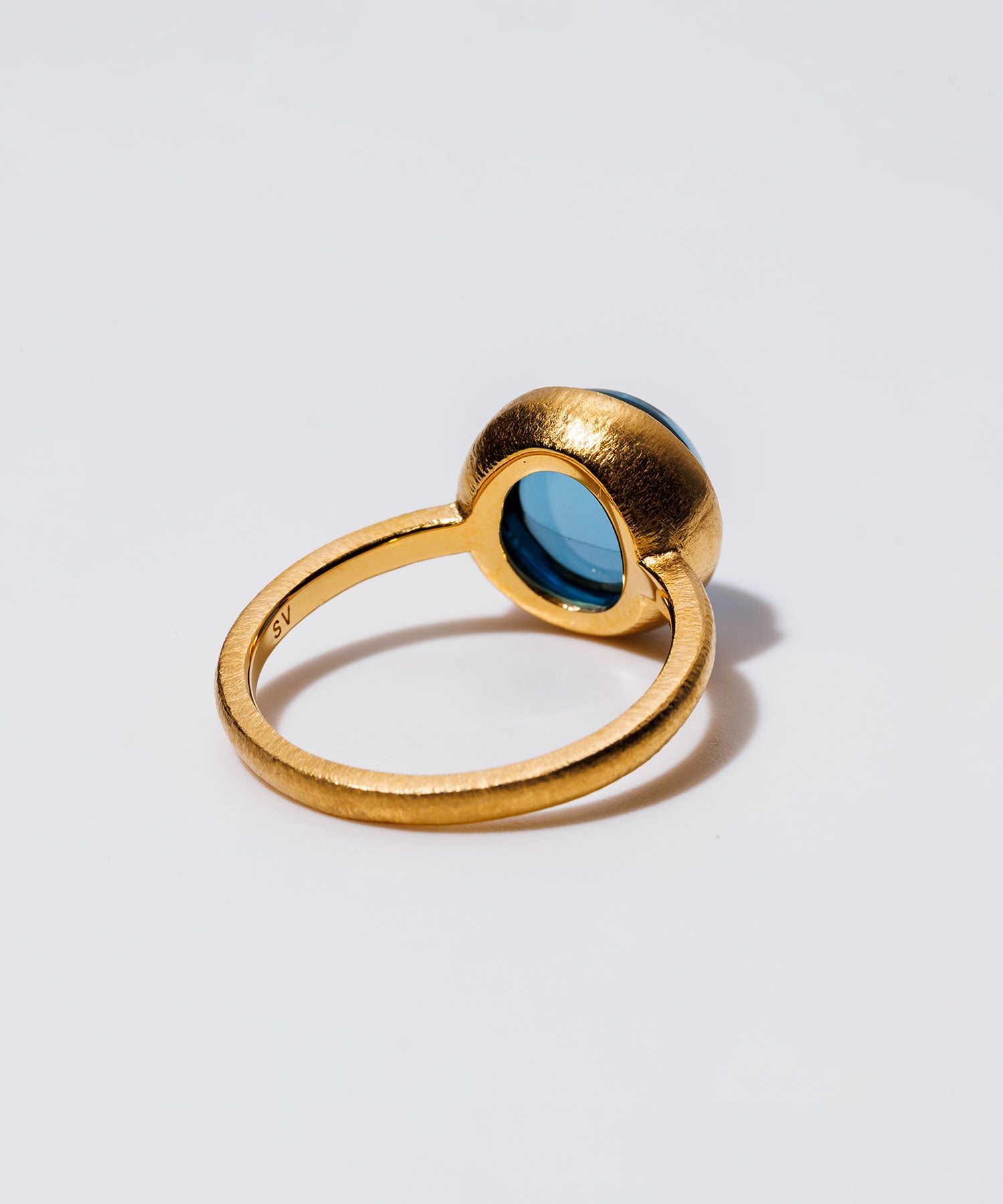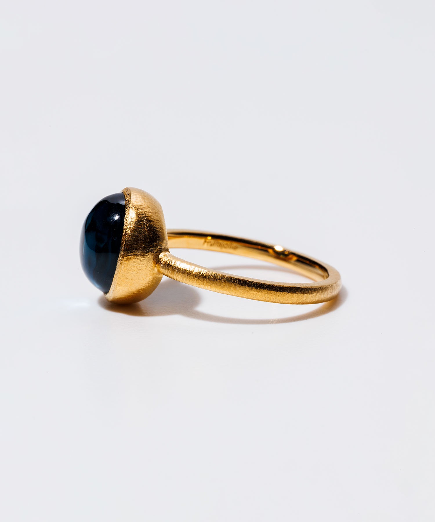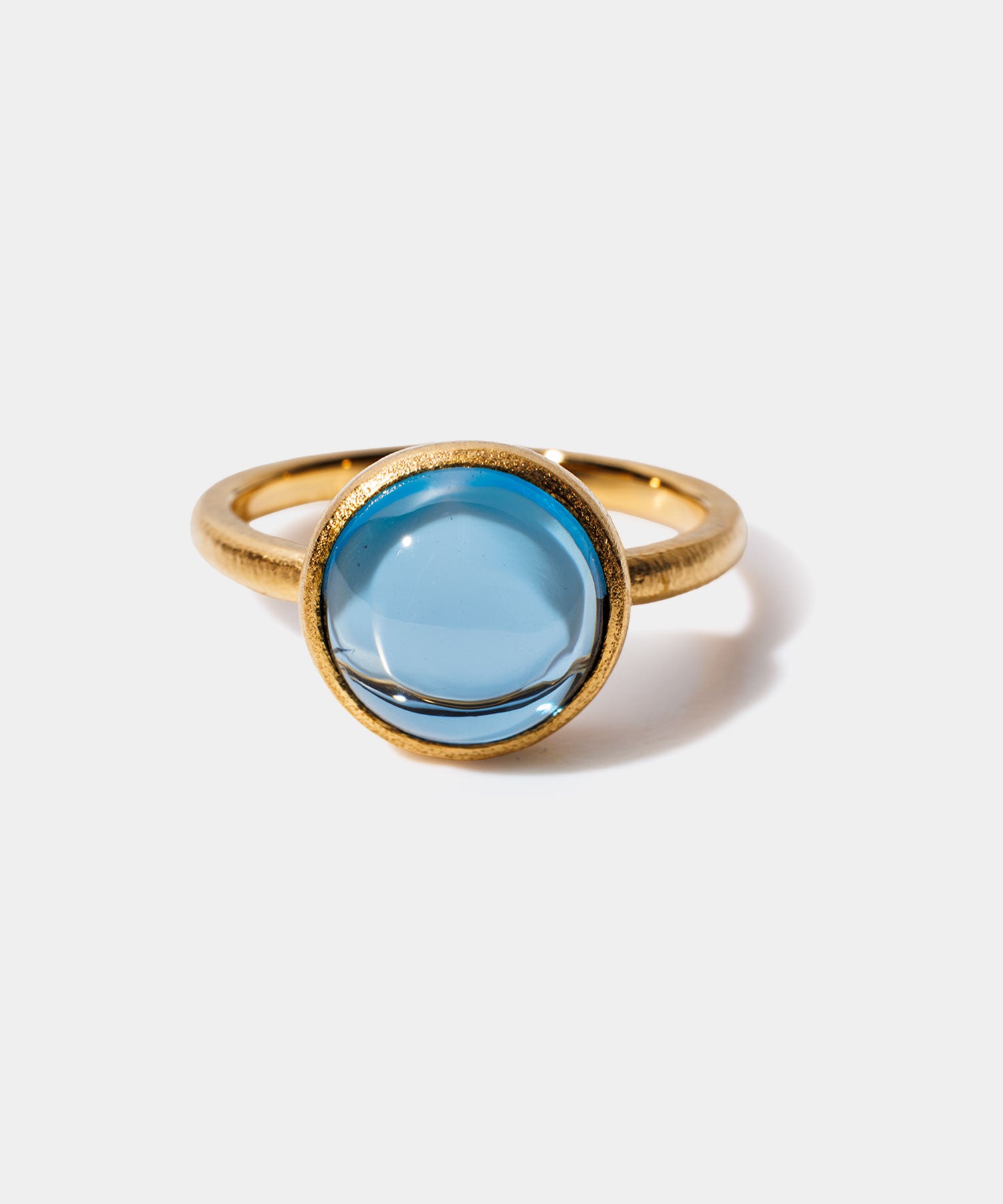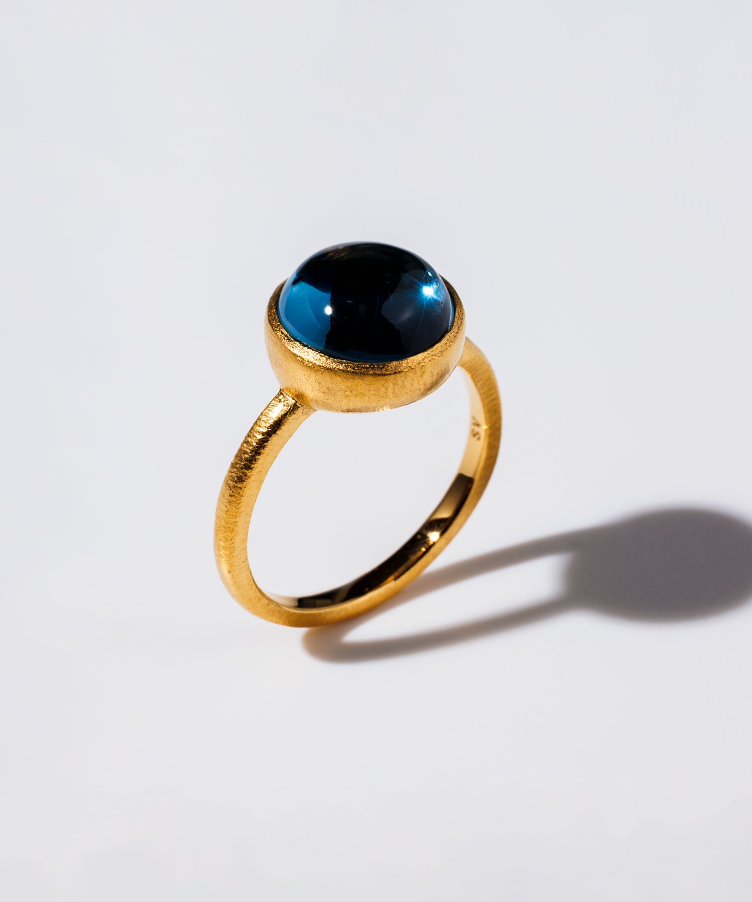 覗き込むとロンドンの空模様を連想させる、深く吸い込まれそうな濃紺が魅力的な「ロンドンブルートパーズ」。カジュアルな天然石ジュエリーではなく、シックな装いにもマッチします。