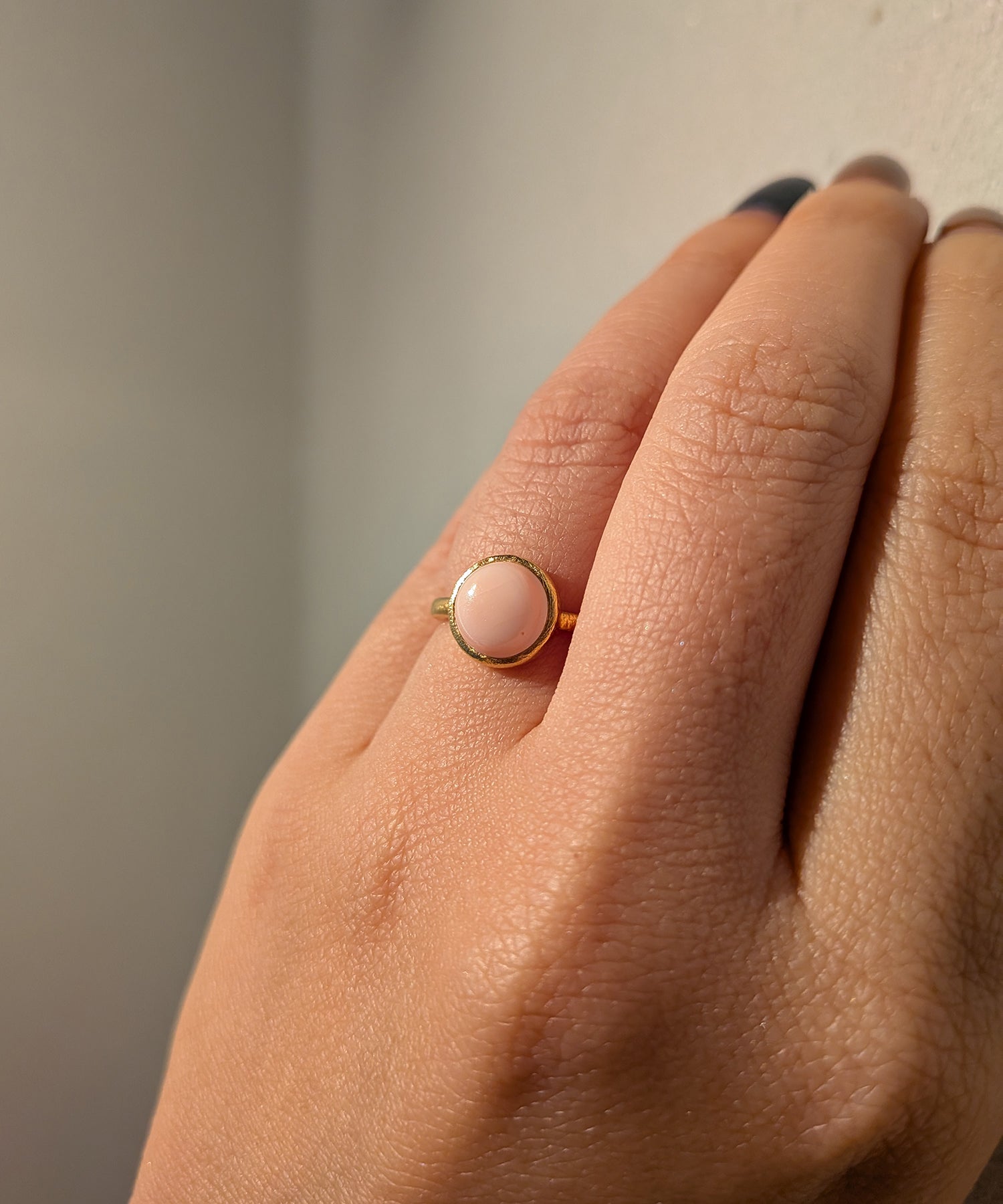 ペールピンクの優しい色合いが魅力的な「クィーンコンクシェル」。貝殻の光沢も美しく、見ていると気持ちが穏やかになります。柔らかな色合いはさりげない中にも存在感があるので、コーディネートのポイントにオススメです。