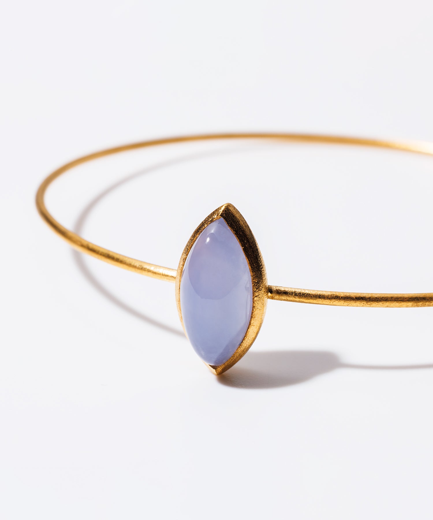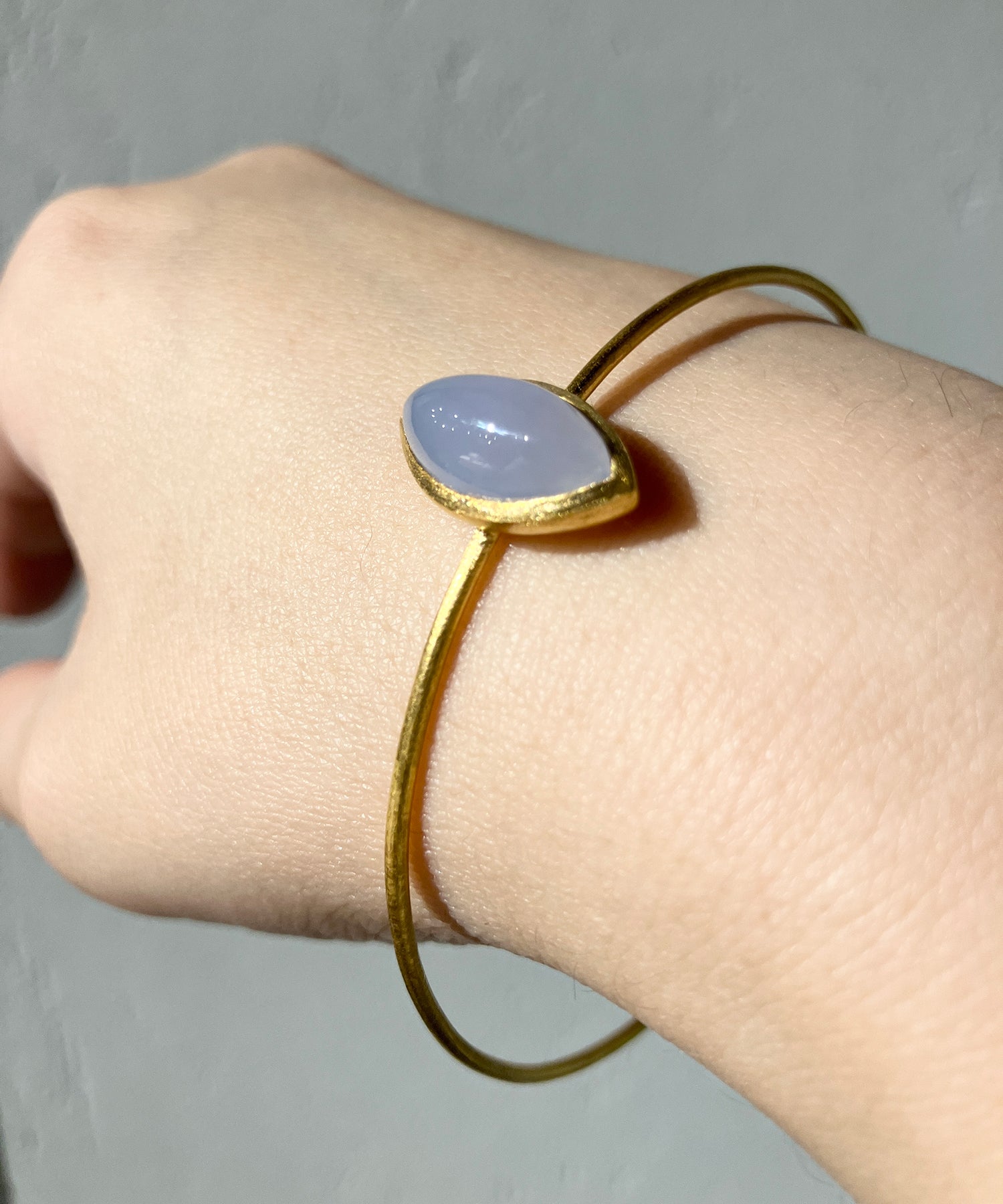 少し青味がかったやわらかな透け感が特徴的な「ブルーカルセドニー」。どのコーディネートにも自然と調和してくれる優れもので、最初に取り入れていただきたいアイテムのひとつ。
