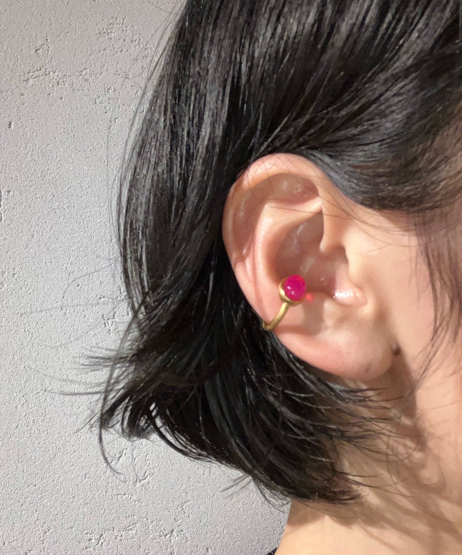 女性らしく存在感のある「パープルピンクカルセドニー」。個性的なショッキングピンクは耳元を華やかに彩り、コーディネートのワンポイントにも最適です。