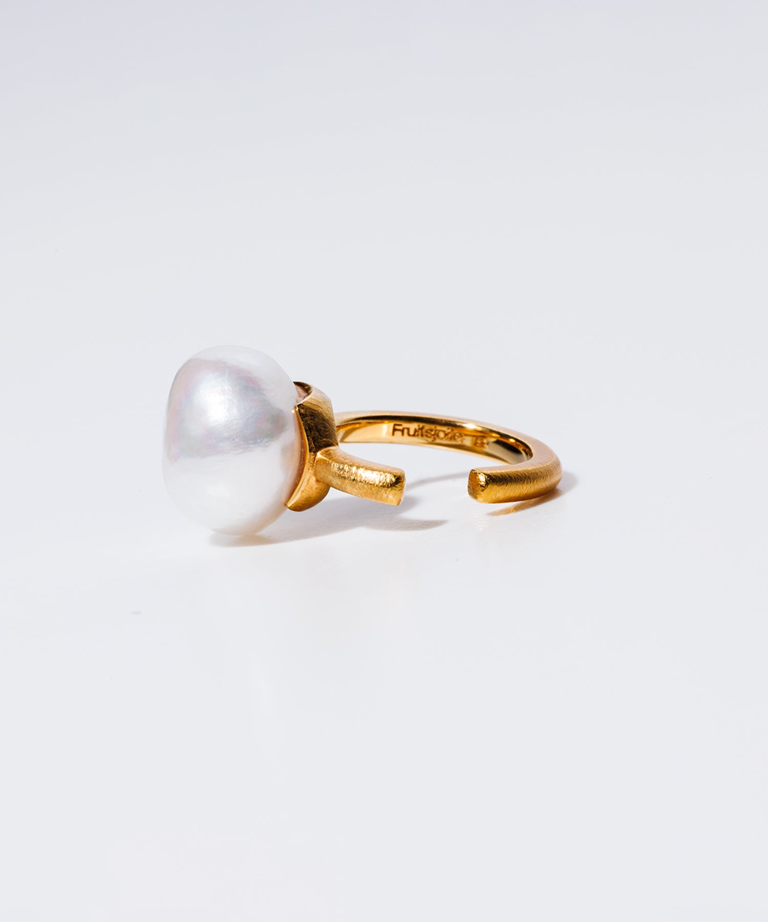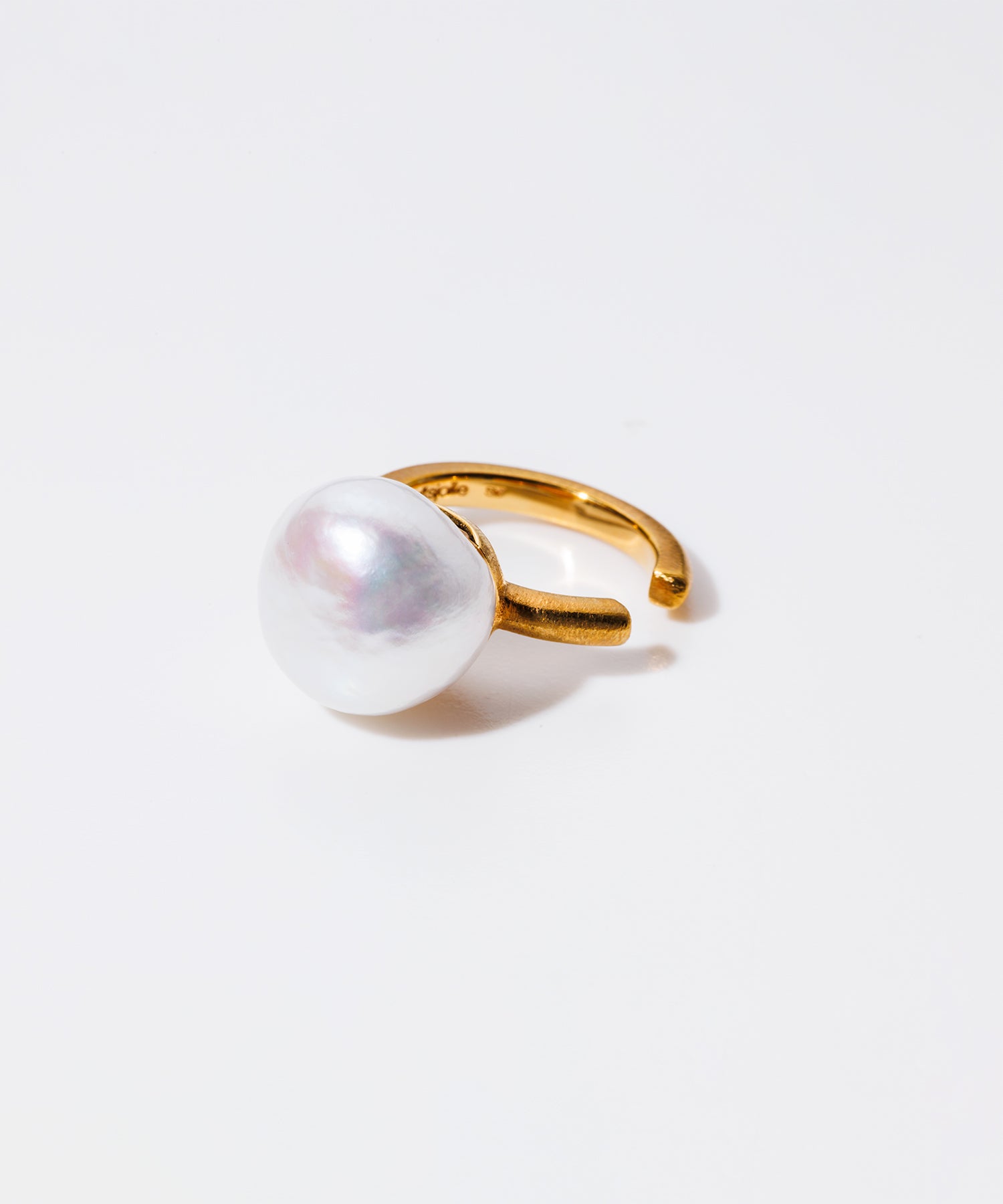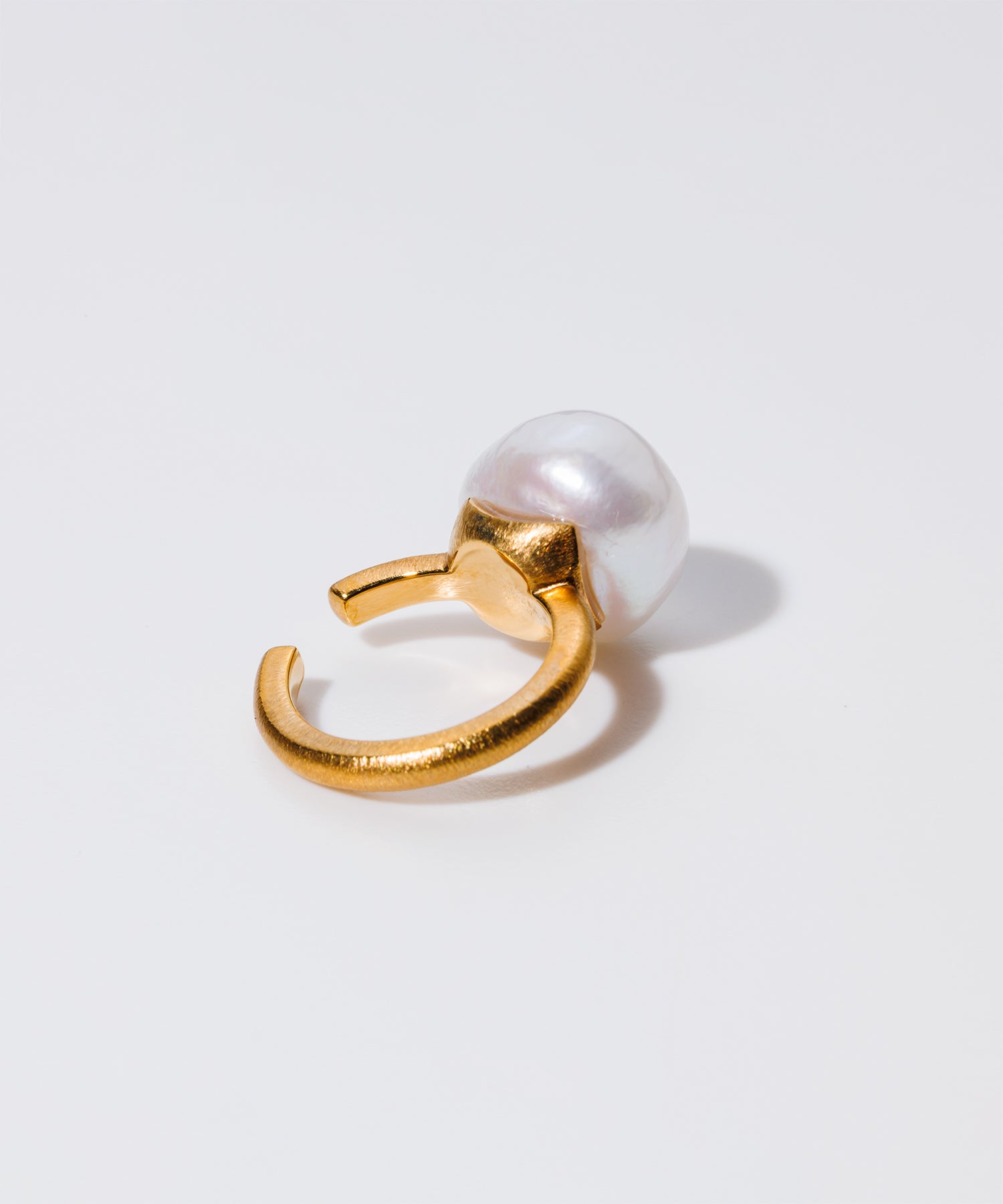 歪な形が個性的な「バロックパール」。マット調の金色枠とのカラーリングはモード系の装いにもマッチ。シンプルなデザインなのでギフトにもオススメです。