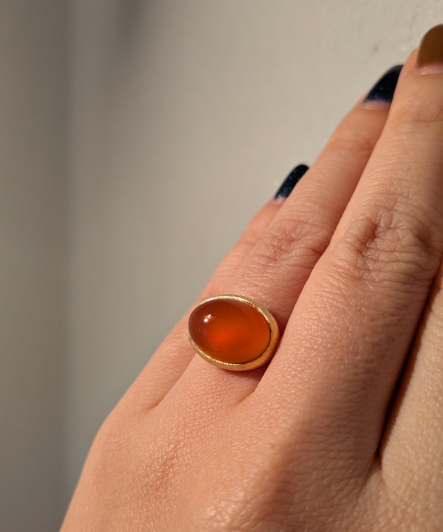 見ていると明るく元気な気持ちを与えてくれる「オレンジカーネリアン」。鮮やかなオレンジ色はシックな色と合わせるとカラーリングが程よく馴染み、 大人っぽい雰囲気をキープして全体のコーディネートを引き締めてくれます。肌色を明るくする効果があるので、挿し色として単体でもオススメです。