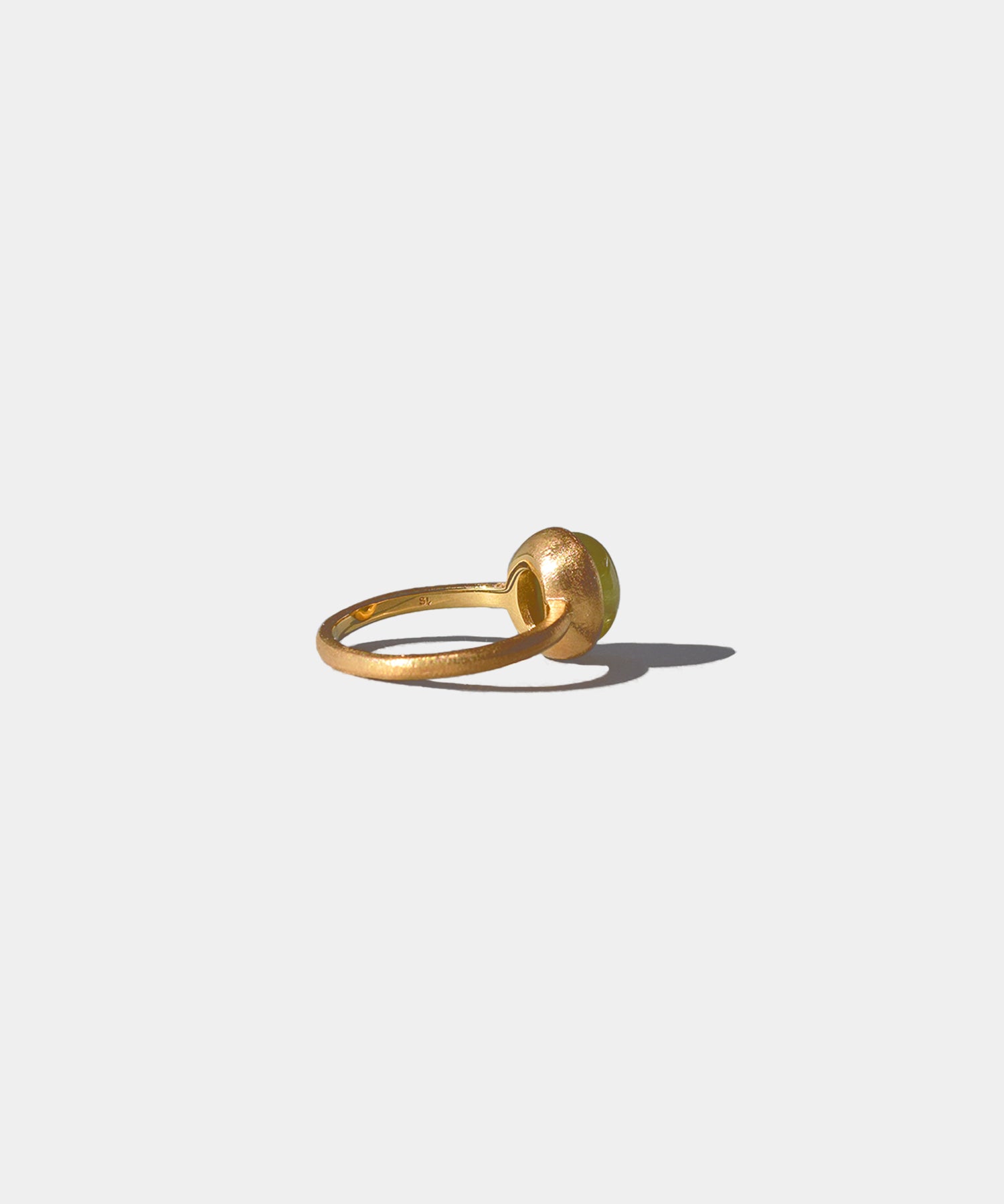見る角度によって多色性がありつつ、柔らかでとろけるようなカラーが魅力的な「スフェーン」。カボションカットは珍しく、少し甘さがありながらも上品な大人の女性の雰囲気を引き立たせくれます。