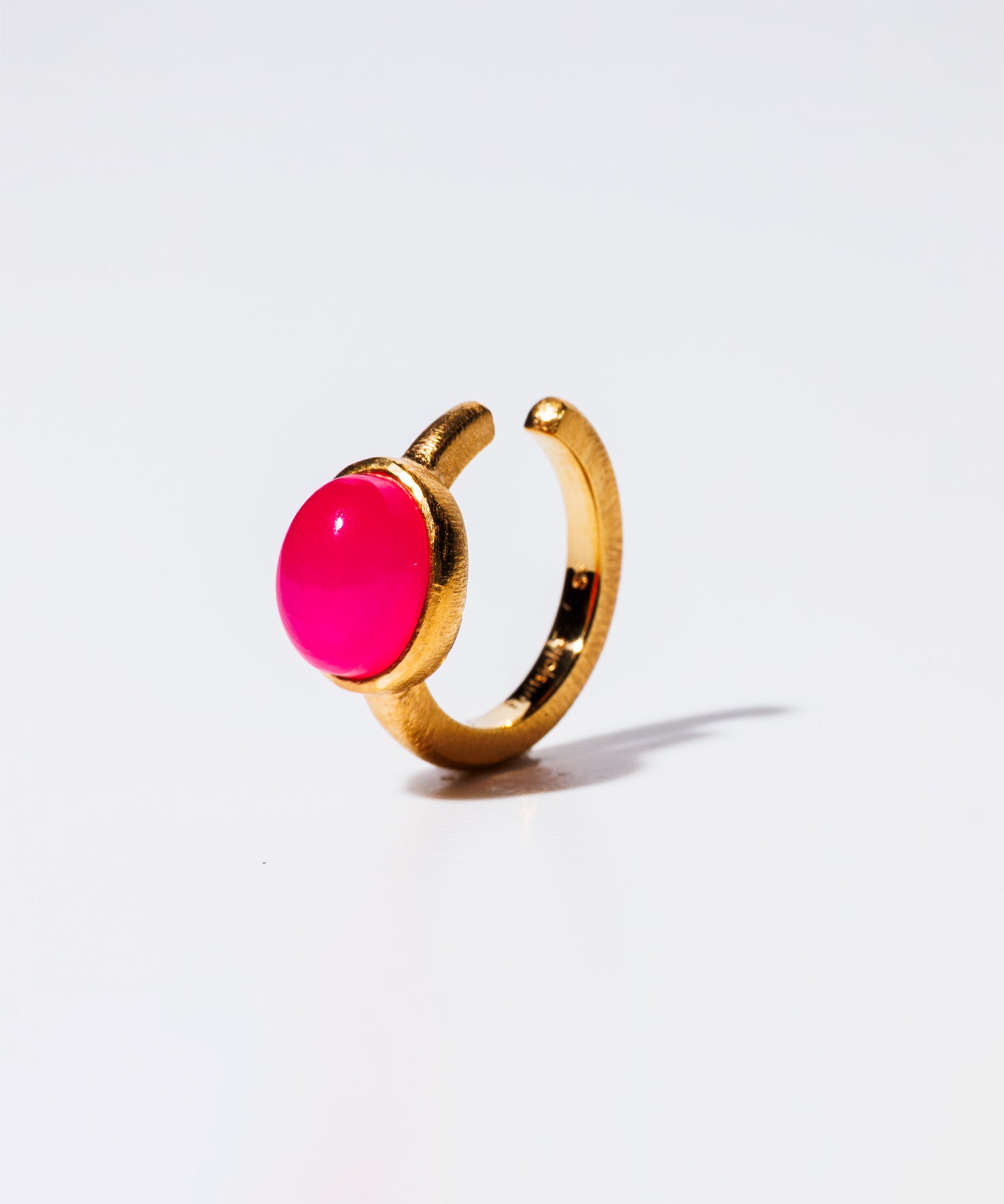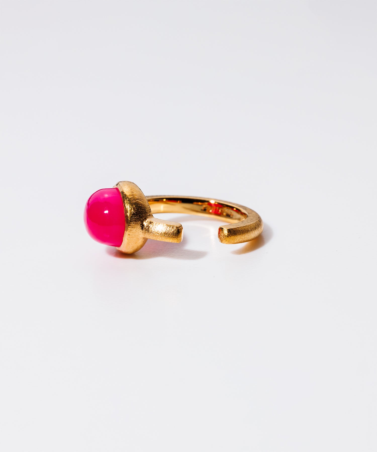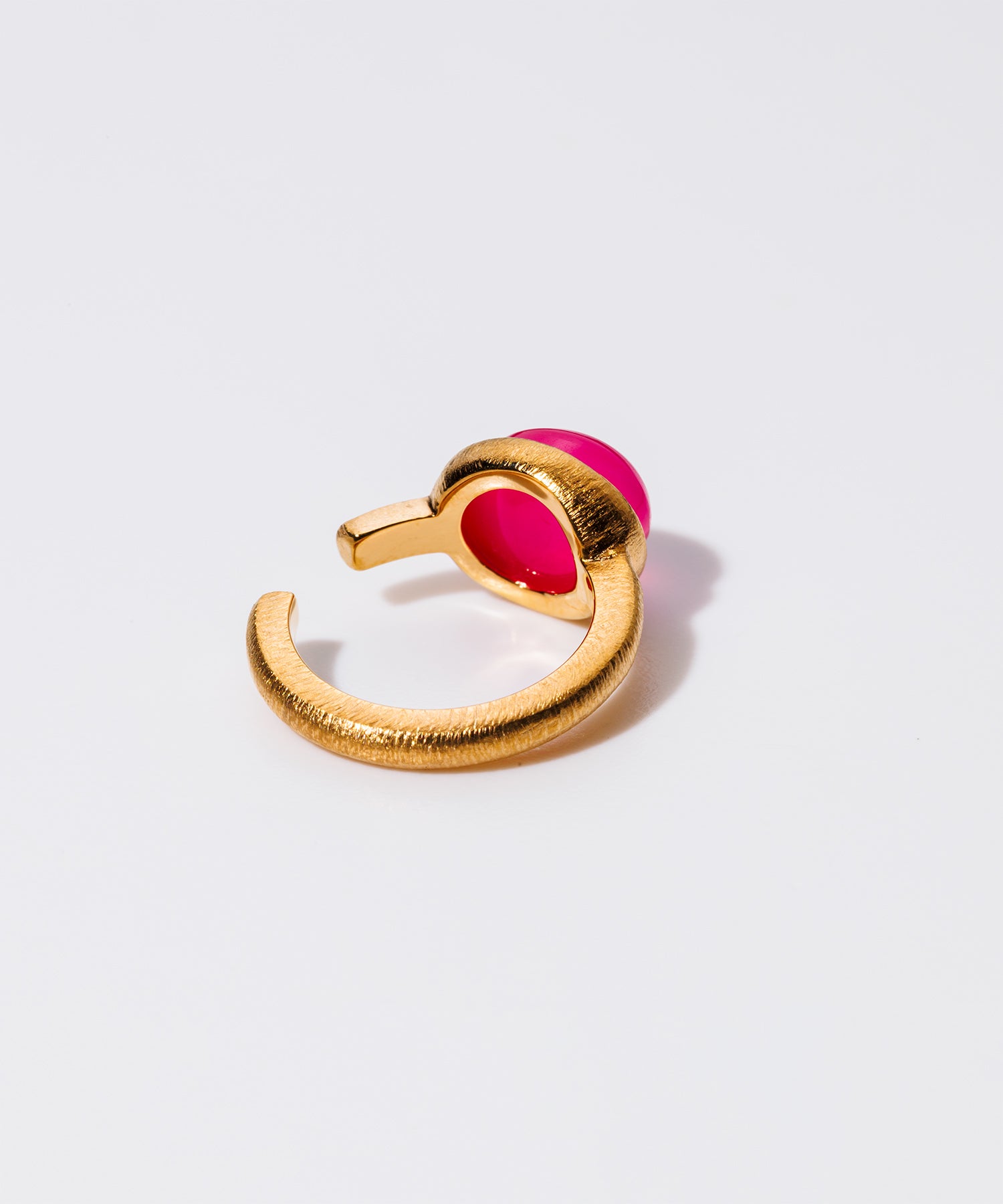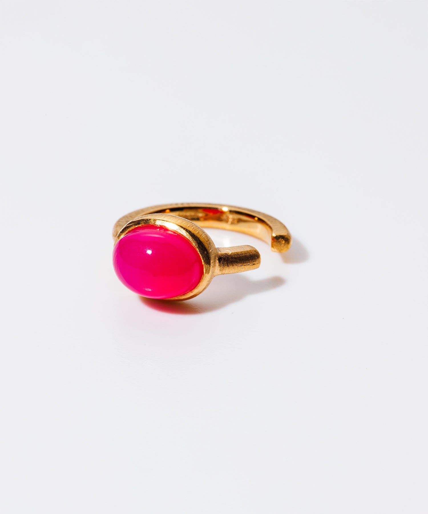 女性らしく存在感のある「パープルピンクカルセドニー」。個性的なショッキングピンクは耳元を華やかに彩り、コーディネートのワンポイントにも最適です。