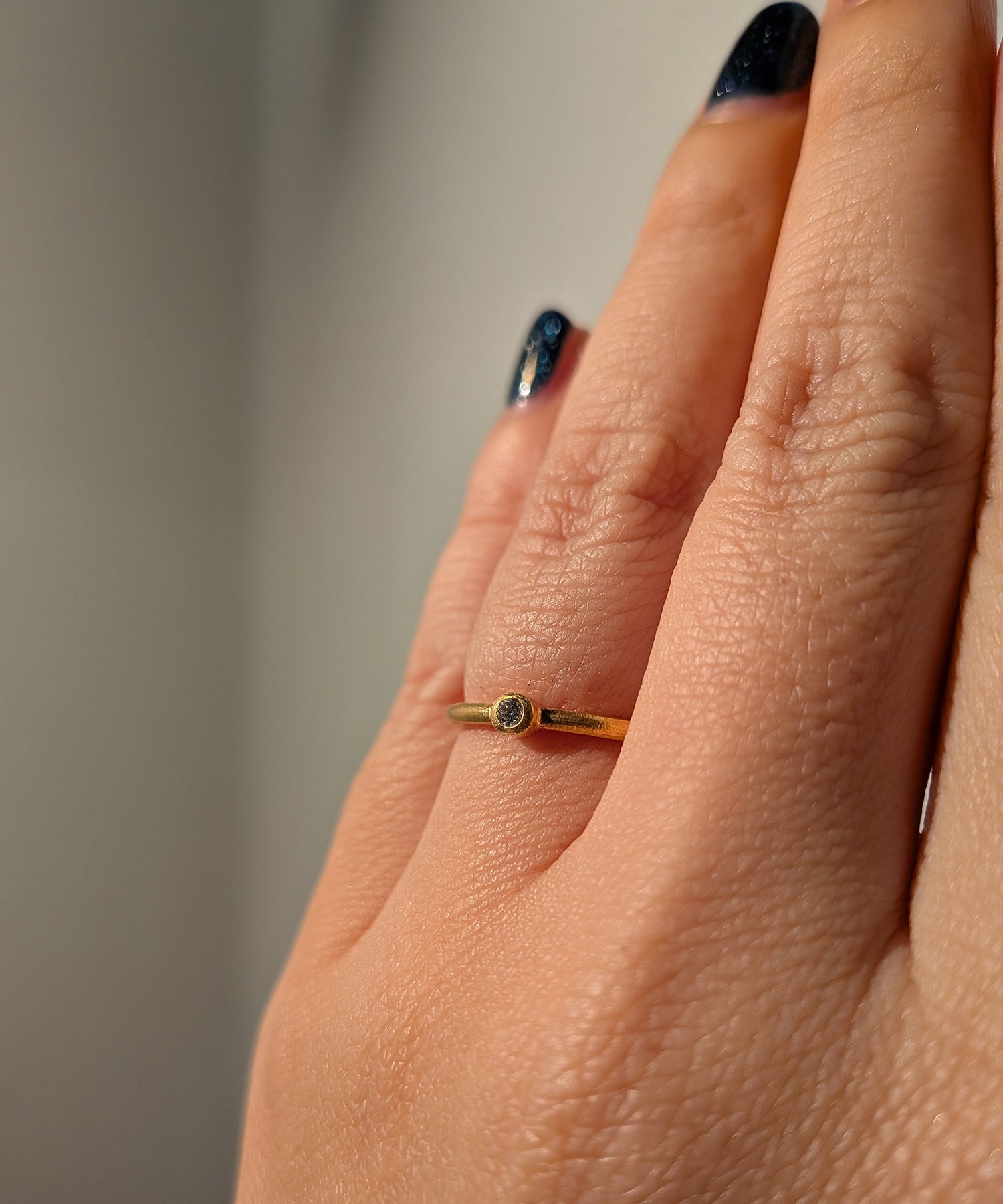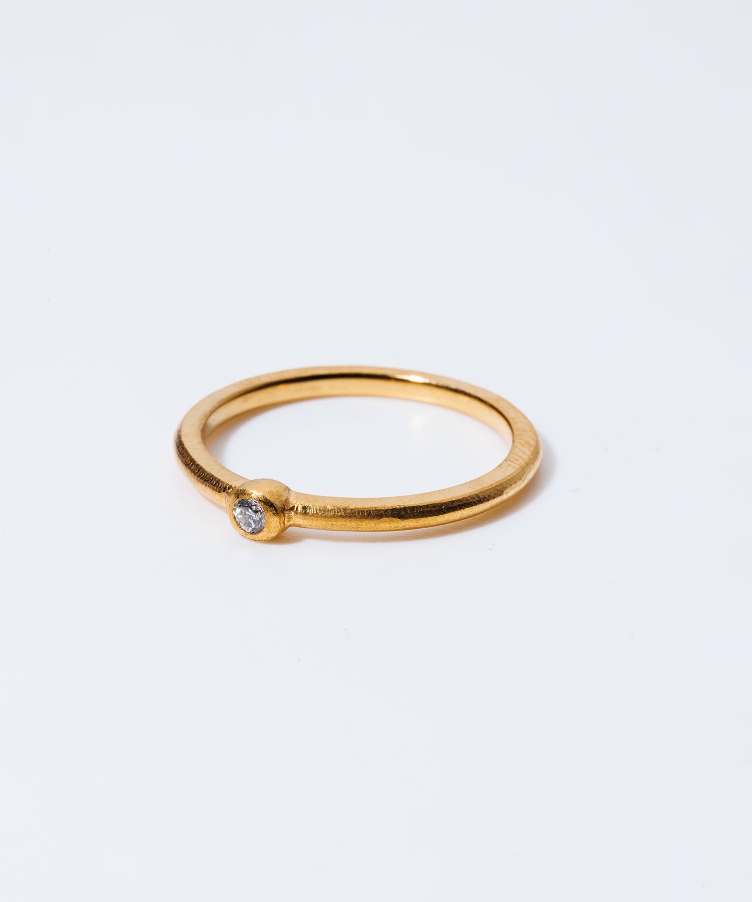 ギリシャ語の“何者にも征服されない”という意味のアダマスが由来とされる「ダイアモンド」。シンプルなマット調の金色枠はダイアモンドの輝きをより引き立たせてくれます。さりげない石のサイズはオケージョンを選ばず使っていただけるので、ファーストリングとしてもオススメ。