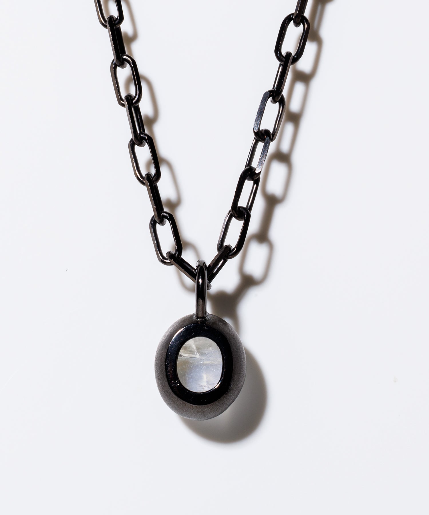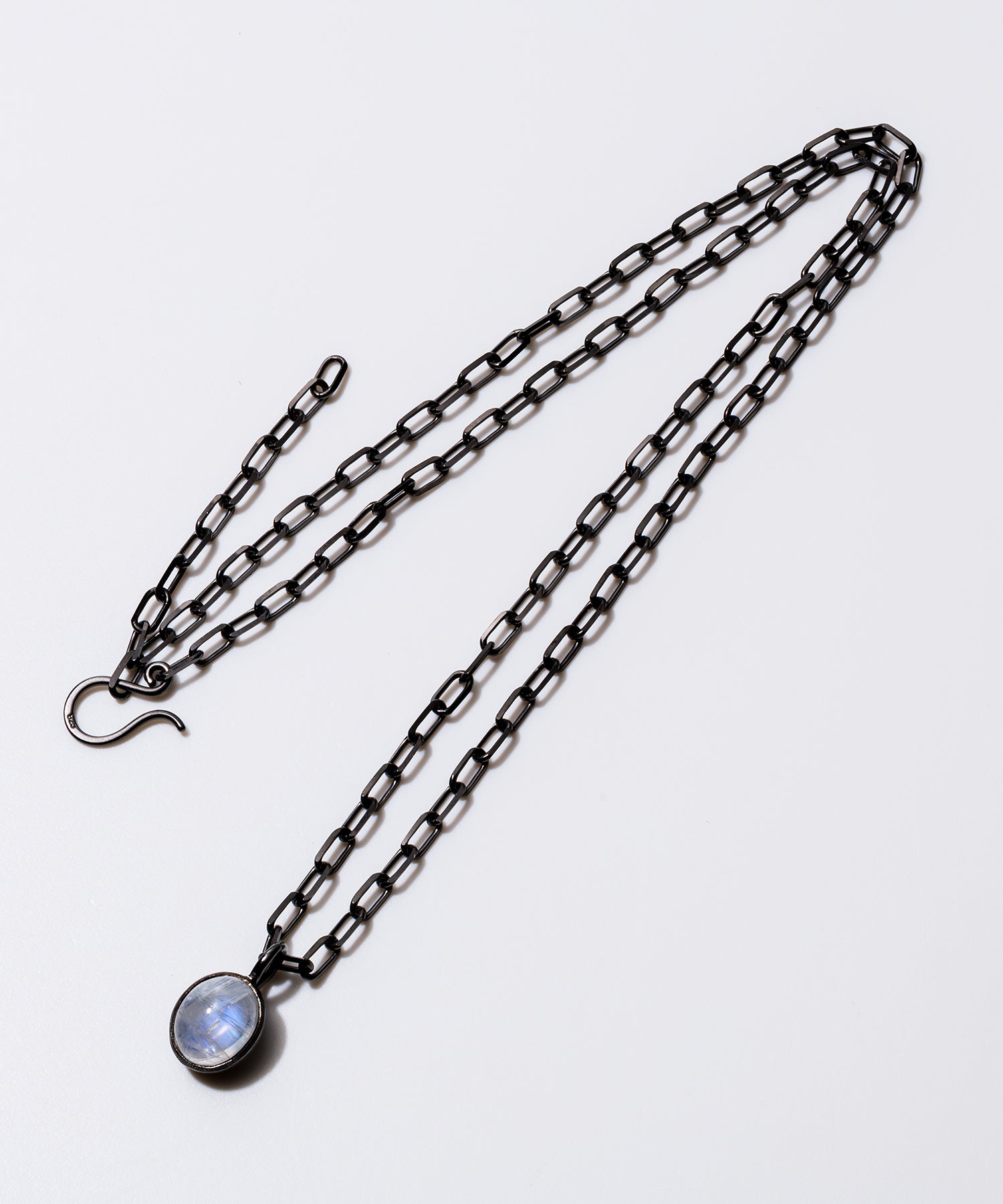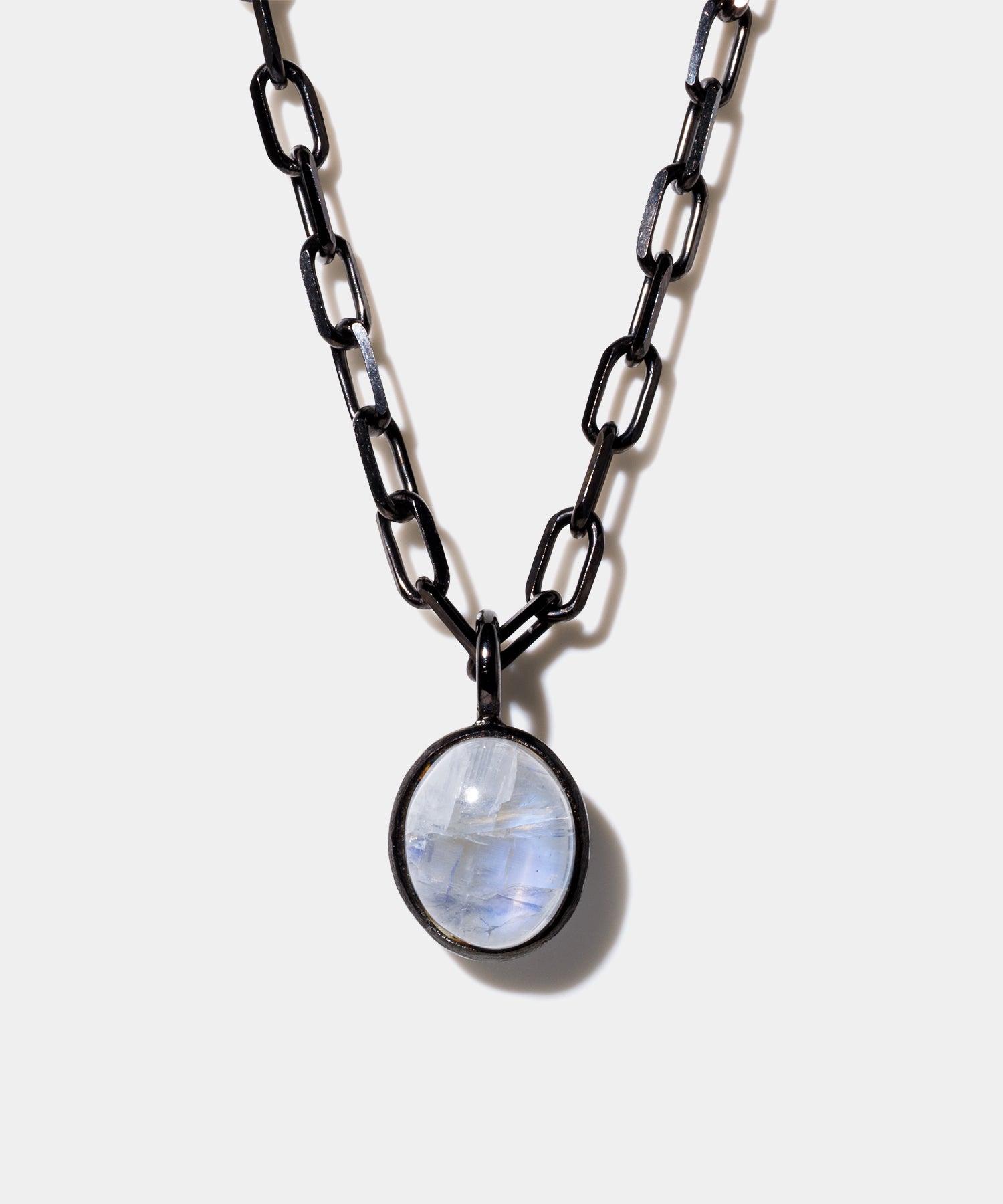 光に当てると様々な表情を見せてくれる「レインボームーンストーン」。自然が織り成すインクルージョンは一つ一つの個性として輝きを放ちます。クリスマススペシャルギフトとして、シラー効果が美しいレインボームーンストーンをセットした、シックでラグジュアリー感あふれるペアネックレスを数量限定で5点ご用意しました。メンズのブラックチェーンはシックで渋いイメージ。彼氏や旦那様へのプレゼントにおすすめなのはもちろんのこと、実は女性にも人気があるカラーなのでご自身で身に着けるのもオススメです。